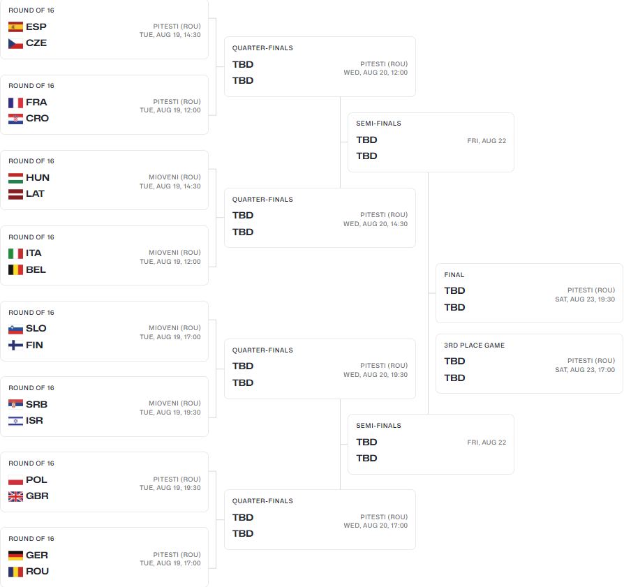 U donjem delu žreba, gde se nalazi Srbija, u osmini finala igraju Poljska – Velika Britanija i Nemačka – Rumunija, pa bi Srbija u eventualnom polufinalu išla na jednu od ove četiri selekcije.