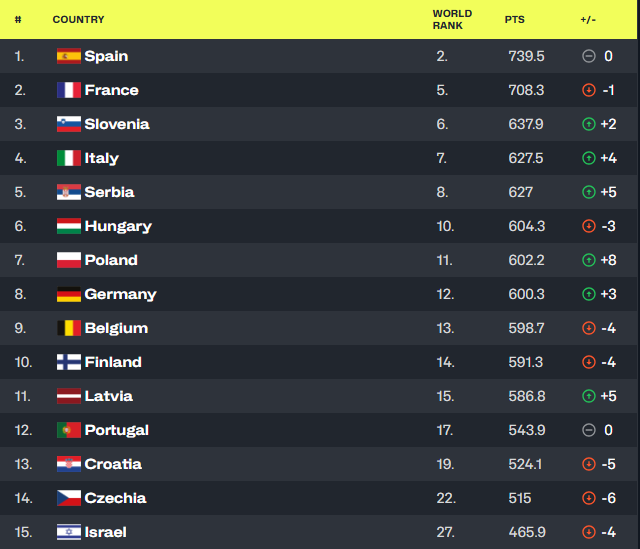 Kada je evropska lista u pitanju, Srbija je na petom mestu. I u ovoj kategoriji naše mlađe selekcije su napredovale za pet mesta.